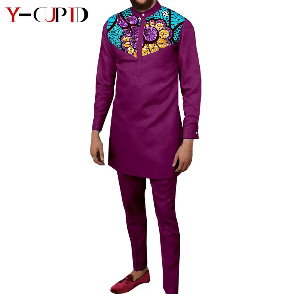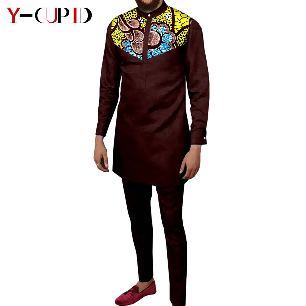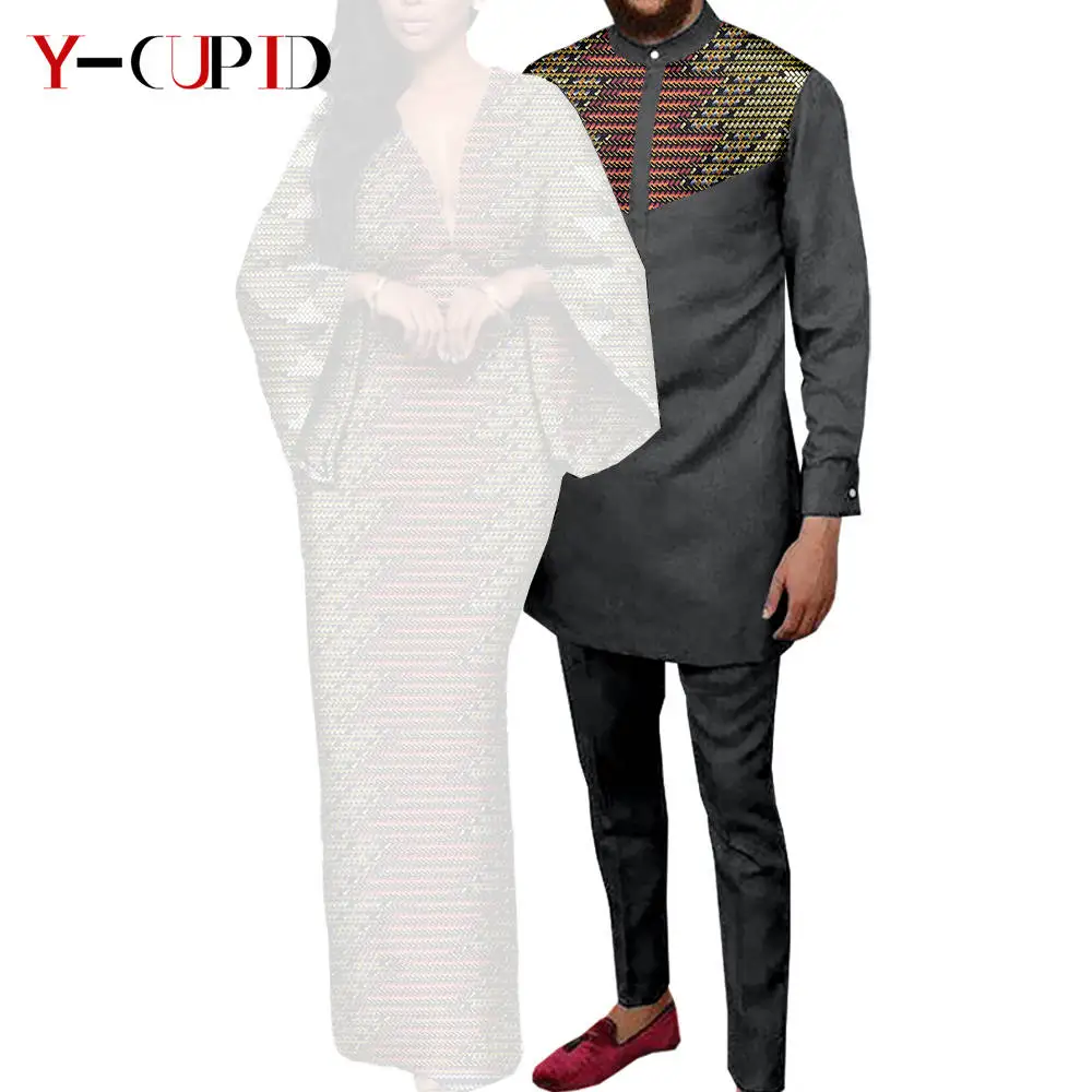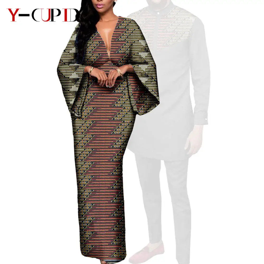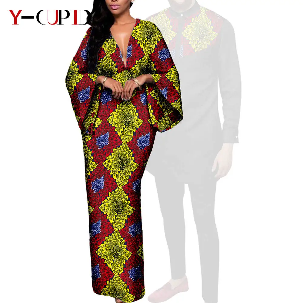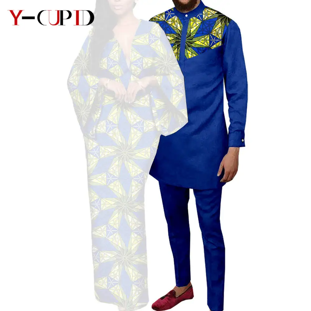Couple Clothes African Print Deep V neck Long Dresses for Women Matching Men Outfits Dashiki Top Shirt and Pant Sets Y23C088