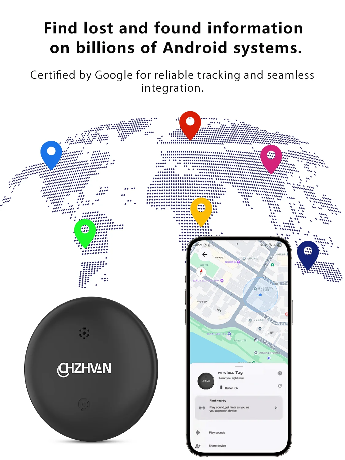 Smart Finder: The Wireless Tag for Android is a Google-certified location tracker that supports finding items on Android phones (Android 9 or later, not compatible with iOS) using Google’s “Find Hub” app.