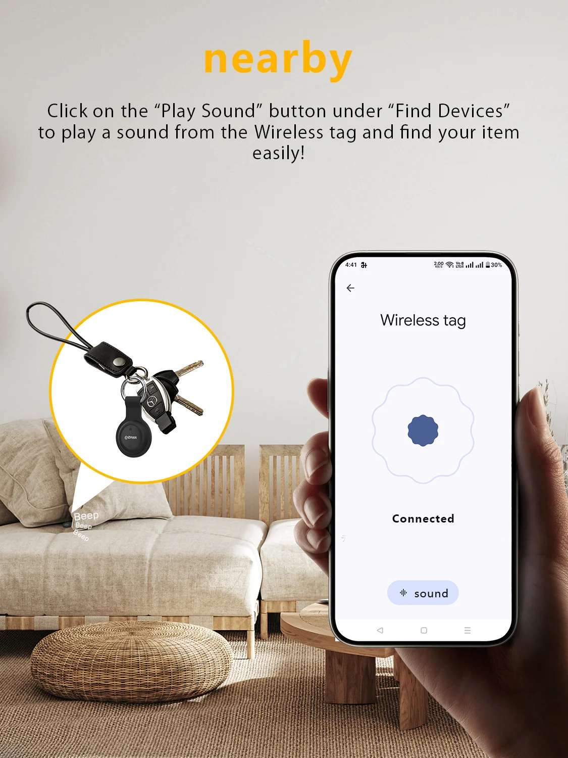 Tracking tags with sound: Within Bluetooth range (50 meters/164 feet), you can activate the sound through the Google “Find M app or voice commands to view real-time location and easily find your items. The tracking tag will emit a loud ringtone to help you locate it.